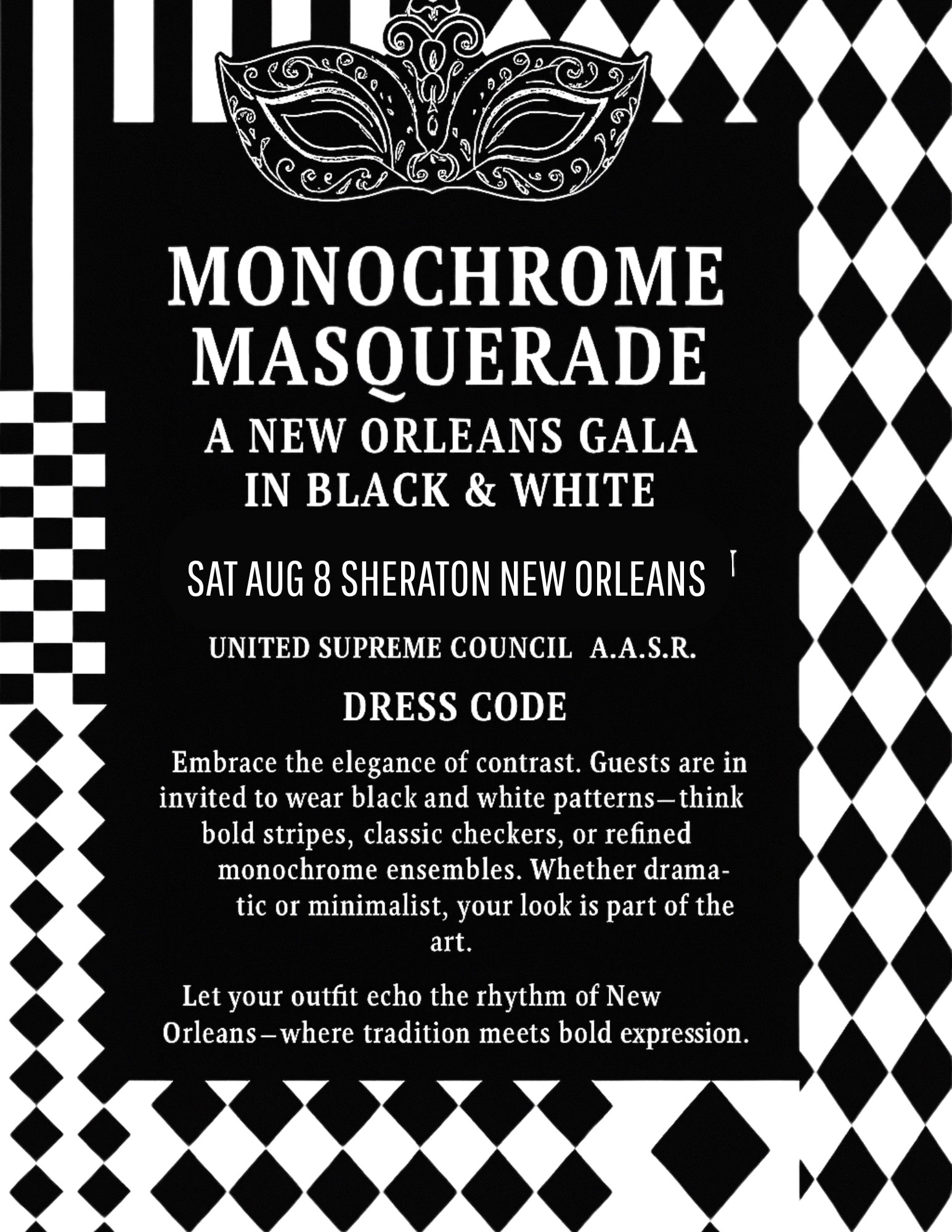 Members and Guests are encouraged to wear BLACK AND WHITE PATTERNS – THINK BOLD STRIPES, CLASSIC CHECKERS, OR REFINED MONOCHROME